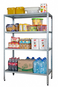 • Стеллаж СтПЛ 500*500*1800 4 полки сплош. нерж. 0,8мм, стойки уголок оцинк.