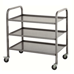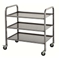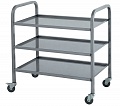 Тележка сервировочная ТС-Л-3-800.500.850-02 (ТС-3) - предназначена для перемещения на предприятиях общественного питания продуктов, готовых блюд, напитков и посуды. Тележка имеет прочную сварную конструкцию и колесами, смягчающими вибрацию. Передвижение тележки осуществляется на четырех поворотных колесах, диаметром 100мм. Пара колес дополнительно снабжена тормозным устройством.