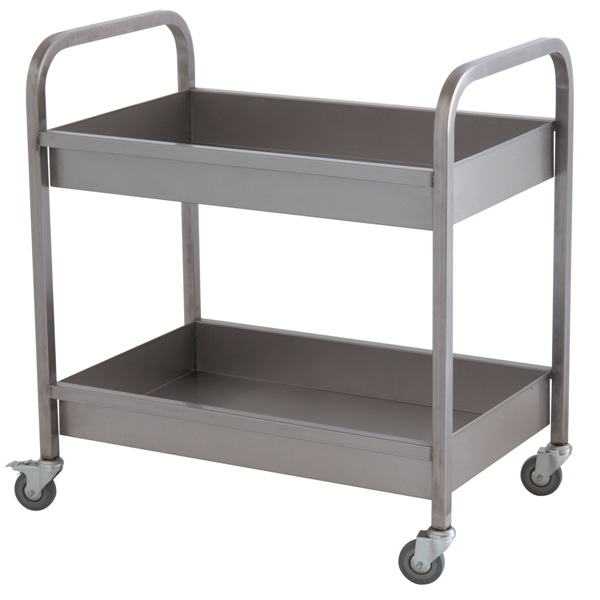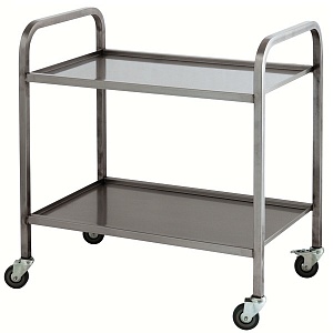 Тележка для сбора посуды ТСП-Л-2-800.500.850-02 (ТСП) - используется на предприятиях общественного питания и торговли для сбора, временного хранения и транспортировки грязной посуды из зала приема пищи в моечное отделение. Сварная конструкция выполнена из высококачественной нержавеющей стали AISI 304. Модель оснащена 4 колесами, 2 из которых снабжены тормозами.
