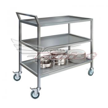 • Тележка сервировочная ТС 800*500*850/950 разборная, 3 поддона, каркас-труба нерж., колеса Ø 100мм, без защитных бамперов