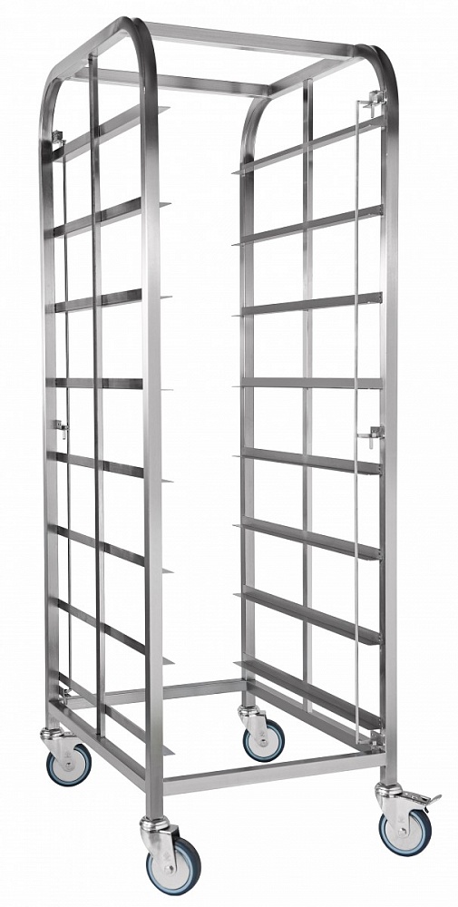 Полностью из нержавеющей стали. Четыре поворотных колеса.