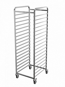 Шпилька КШ-Л-1.18-2.1-02 - серии Люкс предназначена для транспортировки и хранения гастроемкостей и листов для выпечки на предприятиях общественного питания и торговли. Модель оснащена 4 поворотными колесами, 2 из которых с тормозными устройствами. Подгиб кромок изделия исключает получение травм при эксплуатации и санитарной обработке. Сварной каркас выполнен из труб квадратного сечения из нержавеющей стали AISI 304.