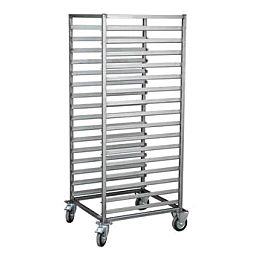 Модель предназначена для транспортировки емкостей и подносов, имеет 16 направляющих. Стеллаж сварной, неразборный.