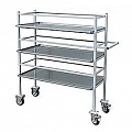 Стеллаж предназначен для транспортировки противней с готовыми блюдами. Имеет 5 направляющих с подносами. Стеллаж сварной, неразборный.