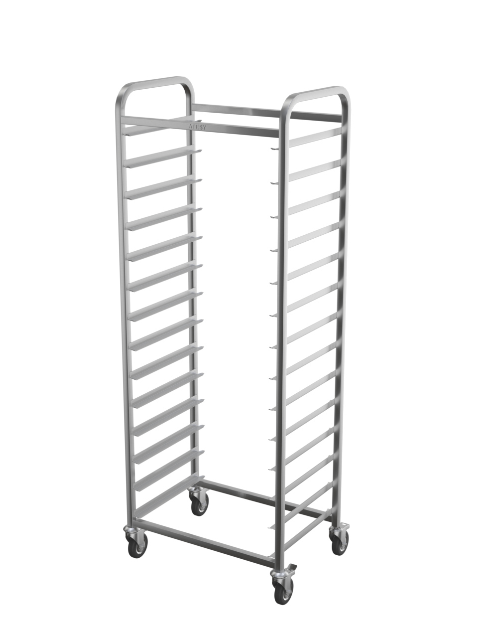 Шпилька для пекарских листов 600*400мм серии ЛЮКС сварная, AISI304, вместимость противней 600х400мм - 14шт., расстояние между уровнями 110 мм, 2 колеса с тормозом.