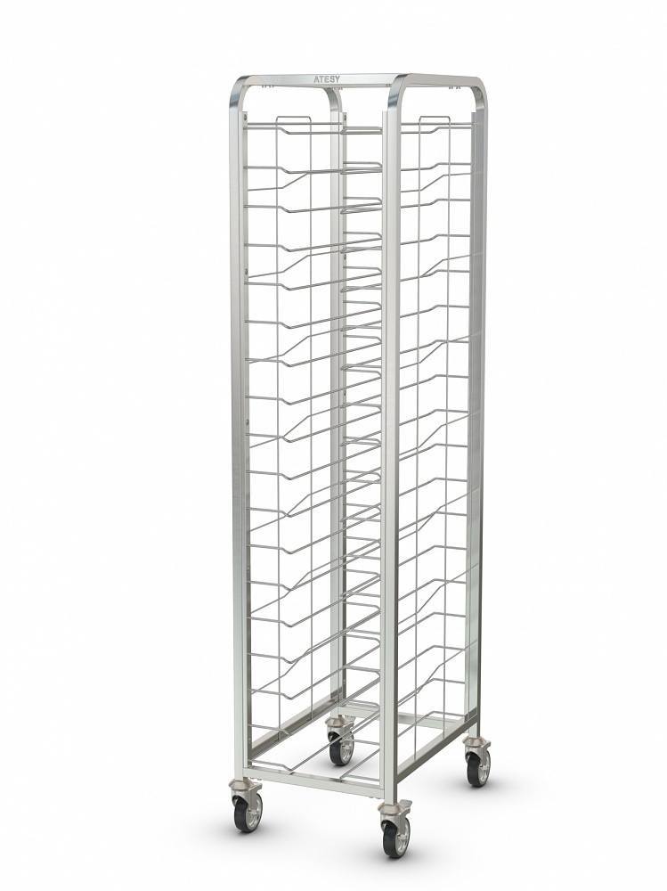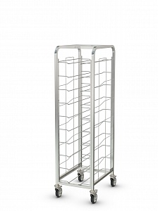 • Шпилька КШП-Л-1.18-350.600-02 для подносов серии ЛЮКС сварная, AISI304, вместимость подносов шириной от 300 до 350 мм и длиной до 600мм - 18шт., расстояние между уровнями 93 мм, 2 колеса с тормозом. Конструкция направляющих обеспечивает фиксацию подносов и предотвращает их выпадение при движении шпильки