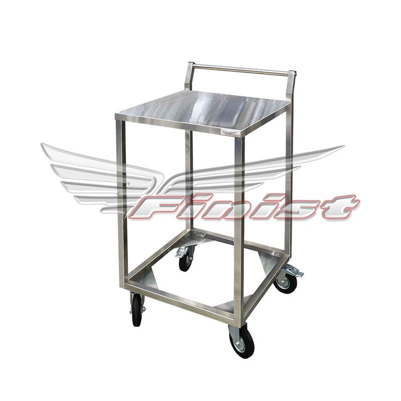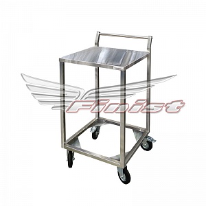 Тележка предназначена для транспортировки пищевых баков из кухонного отделения к линиям раздачи питания. Тележка изготовлена из металла с полимерно-порошковым покрытием. Передвижение тележки осуществляется на четырех поворотных колесах, диаметром 100 мм, два из которых имеют тормозное устройство.