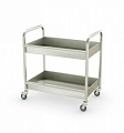 Тележка предназначена для сбора и транспортировки грязной посуды из зала в моечное отделение. Тележка представляет собой сварную конструкцию со съемными поддонами глубиной 100 мм. Выполнена полностью из нержавеющей стали.