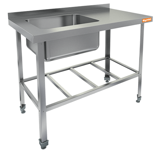 Ванна моечная ВМЛ-2 900*540*850 увел. полка с отвер. для смес. на мойку, борт, сварная мойка нерж. 1,0мм, каркас-уголок оцинк.