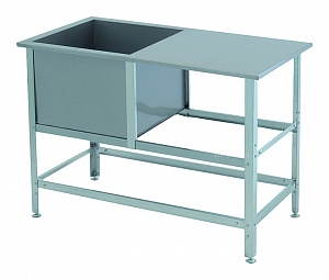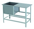Ванна моечная ВСМС-Б-1.600-1350.700-02 - серии Бюджет используется на предприятиях общественного питания и торговли для мойки продуктов, посуды и прочего кухонного инвентаря. Сварная ванна выполнена из нержавеющей стали AISI 430 толщиной 0,8 мм, каркас - из оцинкованной стали толщиной 1,2 мм, ножки - из нержавеющей стали, опора ножек - из пластика.