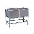 Ванна моечная ВСМ-Б-2.430-02 - серии Бюджет используется на предприятиях общественного питания и торговли для мытья столовой и кухонной посуды, инвентаря, овощей и фруктов, а также для оттайки замороженных пищевых продуктов. Каркас выполнен из профиля из оцинкованной стали толщиной 1,2 мм, ванны - из нержавеющей стали AISI 430 толщиной 0,7 мм, опоры регуляторов высоты ножек - из нержавеющей стали. 2 секции 430х430х300 мм, ванна секционная моечная ВСМ сварная изготовлена из нержавеющей стали AISI 430, каркас - оц. сталь