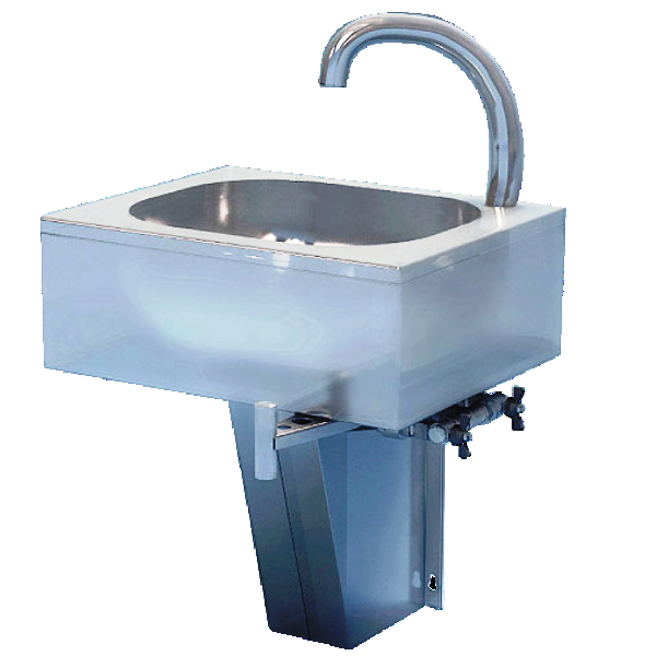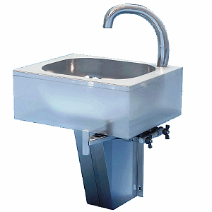 Консольный рукомойник ATESY ВРНК-500 используется на предприятиях общественного питания и торговли для мытья рук персонала. Модель оснащена рычагом, при нажатии на который бедром (ногой) из установленного на ванну носика поступает вода. Ванна выполнена из нержавеющей стали AISI 304 толщиной 0,8 мм.