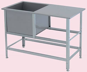 Ванна моечная со столом ВСМС-Б-1.430-1010.530-02-К - секционная моечная со столом ВСМС предназначена для использования на предприятиях общественного питания для мытья столовой и кухонной посуды, инвентаря, овощей, фруктов, для оттайки замороженных пищевых продуктов и пр.