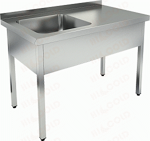 Ванна с рабочей поверхностью РПЦн - 1500*700*860 "Norma Zn", левое 1 м/о 500*500*300, борт, отв. д/смесит., экран (ножка угловая)