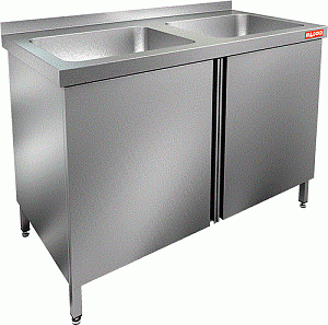 Ванна моечная ВМН-2 1000*500*850 борт, отв. д/смесит. на каждую мойку, локтев. смесит. 2шт., сифон с разрыв. струи 2шт., св. мойка нерж. 1мм