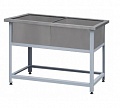 Ванна моечная ВМБ-2 1600*800*850, борт, отв. для смесит. на кажд. мойку, св. мойка нерж. 1мм 750*660*300, каркас уголок краш.