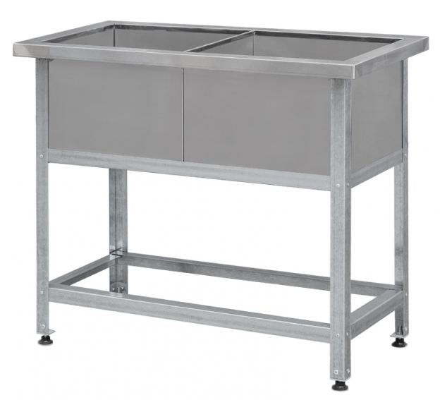 Ванна моечная - сварная мойка. Серия «Лайт» ВМЛ - каркас на уголке, выполнен из оцинкованной стали. Каркас оснащен регулируемыми по высоте опорами для компенсации неровностей пола. Ванны могут поставляться как в собранном так и разобранном виде.