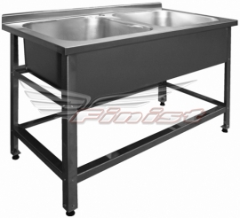 Ванна моечная с бортом ВМНц-2 950*540*850, отв. д/смесит. на каждую мойку, каркас угол. нерж. Цельнотянутая мойка 400*400*250