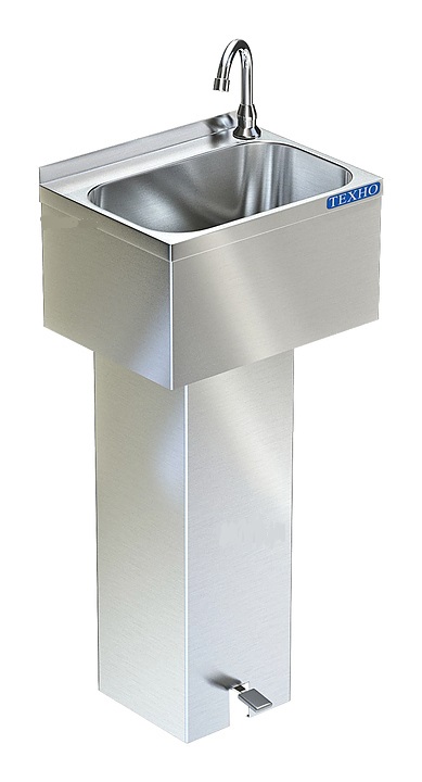 Ванна моечная ВМ-12/302 (рукомойник ножной), 400*320*850 - используется в моечных цехах на предприятиях общественного питания и торговли. Модель оснащена ножным выключателем и изливом. Сварной каркас выполнен из нержавеющей стали AISI 430, цельнотянутая мойка - из нержавеющей стали AISI 304.