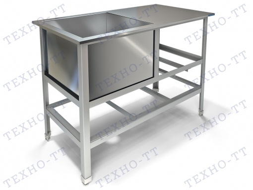 Одна сварная ёмкость размером 530х500х400 из нержавеющей стали марки AISI 304 толщиной 0,8мм, крыло. Каркас сварной из уголка 40х40 нержавеющей стали марки AISI 430 толщиной 2мм, внизу по периметру обвязка. Ванна комплектуется выпуском с нержавеющей решеткой и механическим запорным клапаном, диаметр выпуска 90мм, диаметр подключаемого сифона 50мм, регулируемые опоры. На дне ванны ребра (лучи) для жесткости и снижения вибрации.Ванна поставляется в собранном виде.