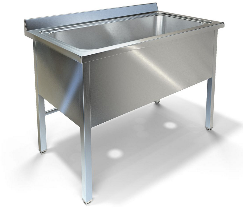 Одна цельнотянутая ёмкость 1060х500х380 из нержавеющей стали марки AISI 304 толщиной 1мм. Объемный пристенный борт. Каркас сварной из трубы 40х40 нержавеющей стали марки AISI 430 толщиной 1,2мм, с тыловой части установлены две перемычки для жесткости. Перелив. Фартук с 3-х сторон высотой 285 мм. Ванна комплектуется выпуском с нержавеющей решеткой и механическим запорным клапаном, диаметр выпуска 90мм, диаметр подключаемого сифона 50мм, регулируемые опоры. На дно ванны нанесена виброшумоизоляция. Ванна поставляется в собранном виде.