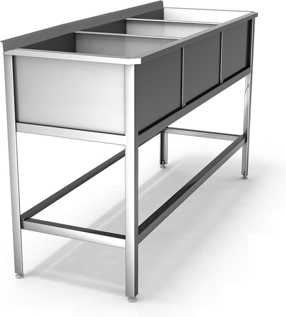 • Ванна моечная ВМЭ-3 1800*600*850 св. мойка нерж. 1,0мм 565*460*450, каркас сварн. труба краш. 25*25
