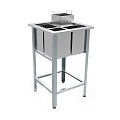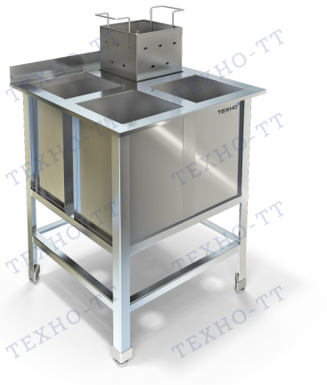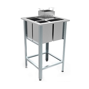 Ванна имеет четыре ёмкости размером 265х265х450 каждая, из нержавеющей стали марки AISI 304 толщиной 0,8мм.