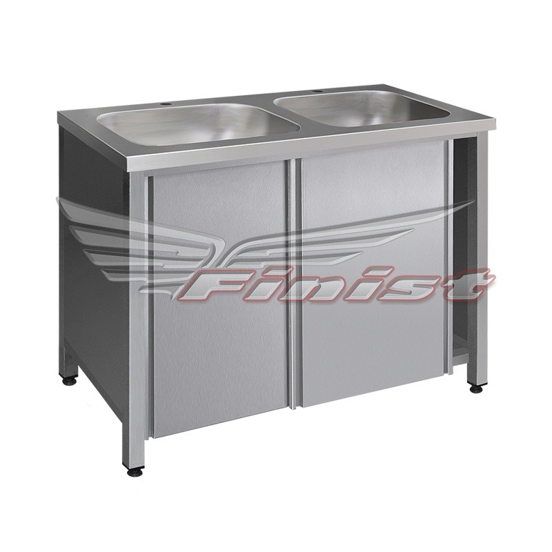 Ванна-тумба ВМТдцс-1 900*600*850, двери распашные, отверстие д/смесителя, борт 45 мм, в комплекте смеситель локтевой 1 шт, отступ задних ног 90 мм, каркас сварной труба нерж. (без задней стенки). Цельнотянутая мойка (слева/справа) 400*400*250 мм.
