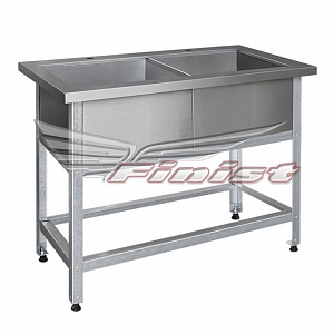 Ванна моечная ВМЛ-2 1590*800*850 сварная мойка нерж. 1.0 мм 745*660*300 мм, каркас уголок оцинк., отступ задних ног 90 мм