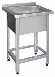 Ванна моечная с цельнотянутой мойкой. Серия «Лайт» ВМЛц — каркас на уголке. Материал каркаса и фартука с 3-х сторон — оцинкованная сталь.