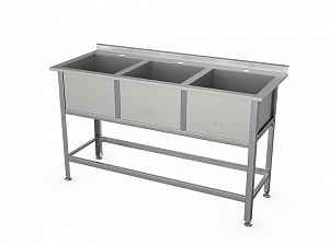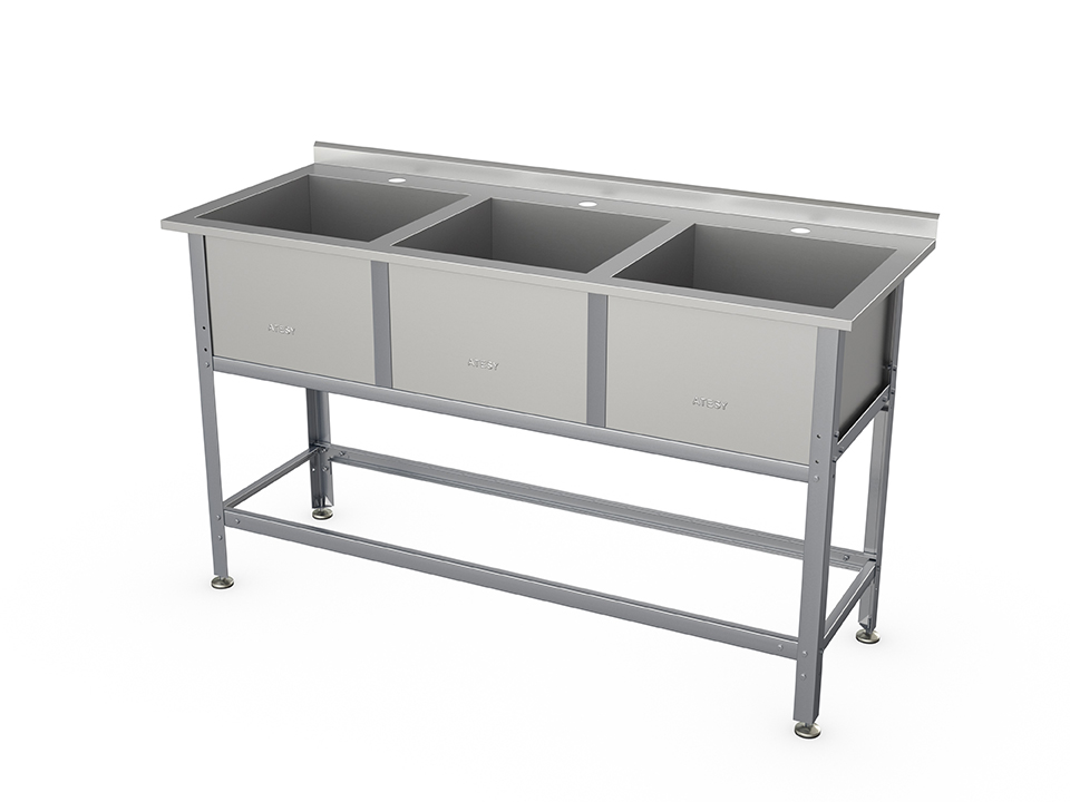 Ванна с рабочей поверхностью РПЦн - 1500*600*860 "Norma Inox", левая, м/о 500*400*250, борт, отв. д/смесит., экран (ножка угловая)
