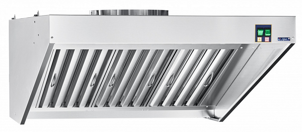 Зонт вентиляционный размещают над любым тепловыделяющим кухонным оборудованием (плитой, жарочным шкафом, пароконвектоматом, фритюрницей и т.д.). Пары масла, жира, проходят через лабиринтные фильтры, оседают на жироуловителях и стекают в жиросборник. Комплектуется вентилятором и лампами подсветки. Зонты могут устанавливаться как в островном, так и в настенном положении.