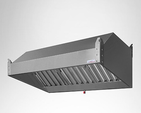Зонт вытяжной нержавеющий — ЗВН-03 – зонт пристенный, применяется в случае, когда оборудование расположено у стены и ограничений по высоте потолка нет. Конструкция считается более эффективной за счет глубины кожуха. Также возможна установка светильников и вентилятора. Рекомендуемое оборудование, над которым устанавливают зонт: пароконвектомат, зона приготовления пищи, гриль.