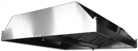 Конструкция считается более эффективной за счет глубины кожуха. Возможна установка встраиваемых светильников и вентилятора. Рекомендуемое оборудование, над которым устанавливают зонт: пароконвектомат, зона приготовления пищи.
