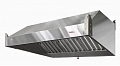 Зонт вытяжной нержавеющий — ЗВН-03 – зонт пристенный, применяется в случае, когда оборудование расположено у стены и ограничений по высоте потолка нет. Конструкция считается более эффективной за счет глубины кожуха. Также возможна установка светильников и вентилятора. Рекомендуемое оборудование, над которым устанавливают зонт: пароконвектомат, зона приготовления пищи, гриль.