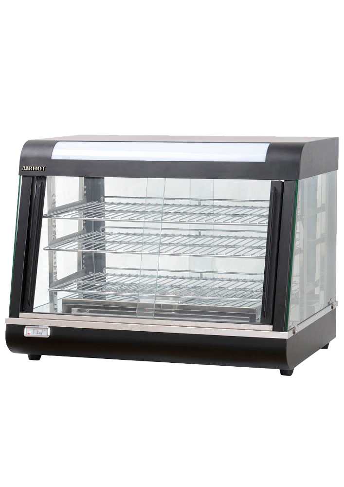 Тепловая витрина AIRHOT HW-60-2 идеально подходит для демонстрации и одновременного подогрева пиццы, тортов и различных закусок. Внутреннее пространство подсвечивается LED-лампам.
