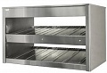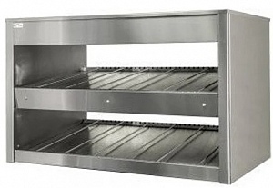 Витрина тепловая, настольная, открытая с 2 наклонными подогреваемыми полками предназначена для демонстрации и хранения предварительно упакованных продуктов. Витрина изготовлена из нержавеющей стали. В конструкции полки использованы комплектующие ведущих европейских производителей. Благодаря комбинированию стеклокерамических нагревателей и нагревательного кабеля, достигается равномерность температурного поля по всей поверхности полки. Температура на каждой полке регулируется отдельно терморегулятором от 30 до 90 град. Расстояние между полками – 210мм. Подсветка находится над каждой полкой. Полки имеют направляющие, позволяющие делить поверхность полки на части разной ширины.