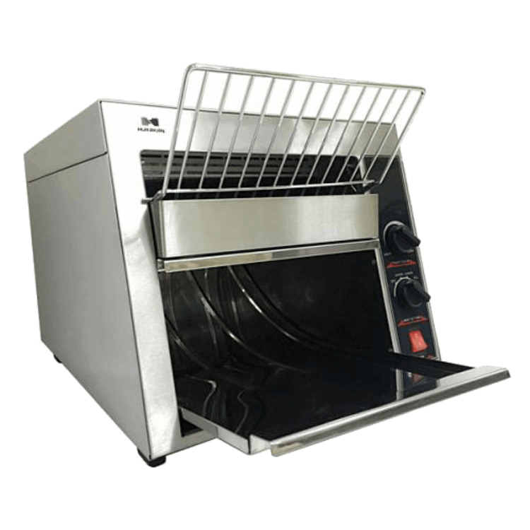 Тостер конвейерного типа Hurakan HKN-LONG VV используется в заведениях быстрого питания, кафетериях, кафе и ресторанах для быстрого подогрева и поджаривания булочек, рогаликов и кускового хлеба.