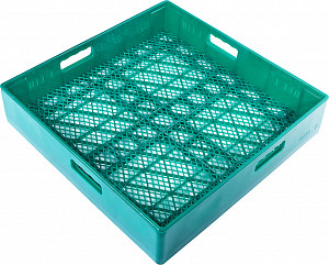 Внутренние размеры кассеты 466х466 мм. Дно кассеты для столовых приборов, в отличие от нейтральной кассеты, имеет мелкую ячейку, которая не позволяет мелким предметам проваливаться. Эта кассета специально предназначена для мытья столовых приборов (ложек, вилок, ножей). Столовые приборы укладываются прямо в кассету и накрываются сверху одной металлической сеткой (код – 11000101475) во избежание их вылета из кассеты во время мойки.