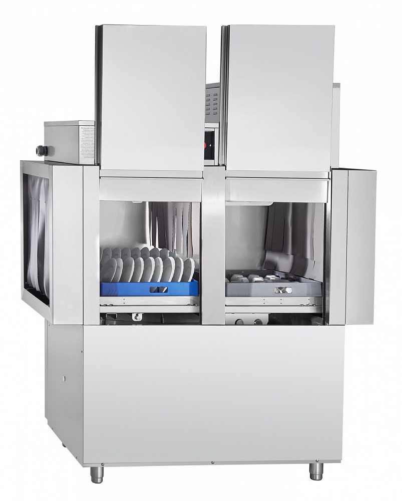 Производительность кассет/тарелок в час - 95/1710 шт. Машина имеет раздельные системы циркуляции воды для мытья и ополаскивания. Корпус двухстенный с теплоизолирующим зазором 15 мм. Может эксплуатироваться как при горячем водоснабжении, так и при холодном водоснабжении.