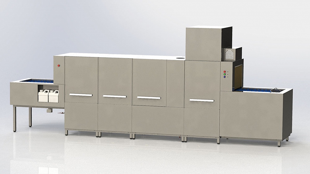 МПС-1600-Л-С – левого исполнения (движение транспортера осуществляется слева направо) с сушкой и теоритической производительностью 1600 тарелок в час.