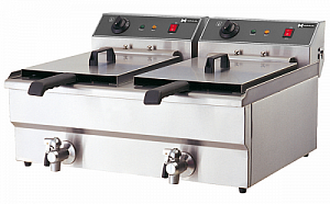 Фритюрница Hurakan HKN-FT1010N предназначена для приготовления широкого спектра блюд в большом объеме масла или жира на предприятиях общественного питания и торговли. Модель оснащена электромеханической системой управления, регулировкой температуры и кранами для слива масла. Корпус выполнен из нержавеющей стали.