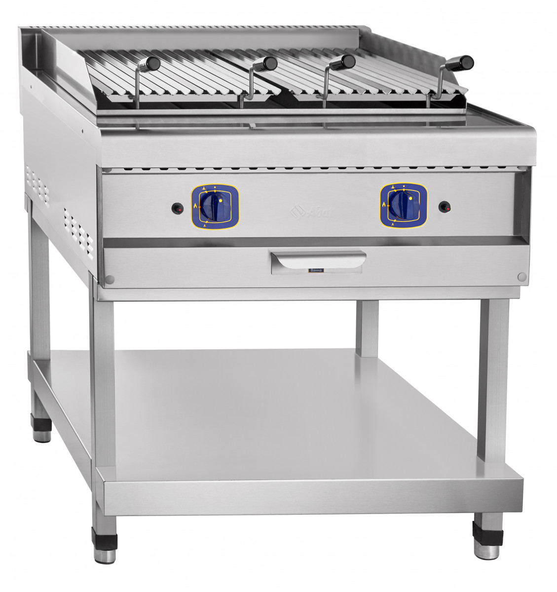 облицовка, боковые панели и подставка с полкой из нержавеющей стали AISI 304 толщиной 1 мм;