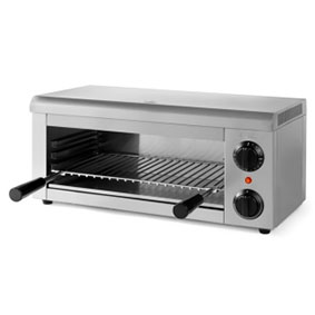 Гриль Salamander GASTRORAG AT-936E предназначен для обжаривания стейков и сосисок, приготовления сэндвичей, полуфабрикатов, подогрева булочек, гамбургеров, хот-догов и поддержания готовых блюд в разогретом состоянии на предприятиях общественного питания и торговли. Закрытая с 3-х сторон модель оснащена регулируемой полкой-решеткой c 3 положениями по высоте и сливным поддоном. Корпус выполнен из нержавеющей стали.