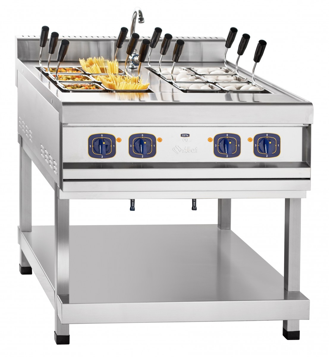 Электроварка ЭВК-90/2П с новыми корзинами GN 1/6 с легкостью справятся с варкой порционных блюд: макарон, картофеля в мундире, яиц, вареников, пельменей, риса и гречки.