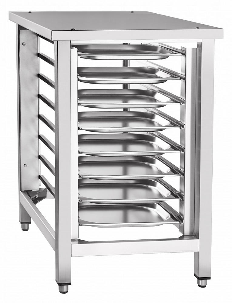 Подставка ПК-8-02 под четырехуровневые конвекционные печи типа КПП-1/2 и мини-пароконвектоматы ПКА 6-1/2П и ПКА-6-1/3П (подставка на 8 уровней под GN-1/2 и GN-1/3).