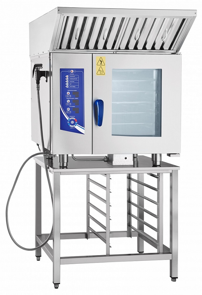 Режим конвекционного парообразования. Этот режим является комбинацией преимуществ режима парообразования и конвекции, при котором достигается высокая скорость циркуляции воздуха, нагоняемого внутренним вентилятором , что гарантирует правильную среду приготовления для всех продуктов и идеальный уровень влажности. Этот режим позволяет реализовать технологические решения приготовления пищи, которые ранее были практически недоступны, и может быть реализован только в пароконвектоматах. Подходит для приготовления всех видов продуктов. Приготовление большей части классических вторых блюд с применением комбинированного режима позволяет Вам готовить блюда за короткое время без использования жиров, без риска подгорания, весовые потери снижаются на 30-50% процентов.