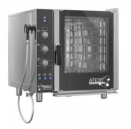 Пароконвектомат РУБИКОН представляет собой универсальную печь, которая использует режимы сочетания пара и принудительной конвекции для приготовления пищи. Все параметры процесса приготовления задаются с помощью набора поворотных ручек и кнопок, расположенных на панели управления. Контроль и регулировка температуры электронная. Время приготовления регулируется с помощью таймера. Таймер автоматически отключает работу аппарата по истечении установленного времени. Таймер имеет положение “бесконечная работа”. принудительная конвекция обеспечивается наличием высокоскоростных вентиляторов внутри камеры.