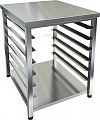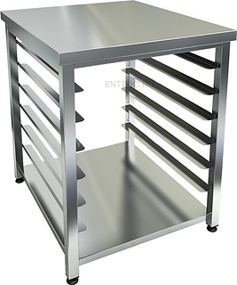 Подставка оснащена усиленной столешницей, сплошной полкой и 6 парами направляющих для размещения стандартных гастроемкостей. Сварная конструкция полностью выполнена из высококачественной нержавеющей стали, ножки представлены профилем.