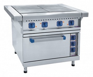 Плита электрическая четырехконфорочная с жарочным шкафом ЭП-4ЖШ-01 предназначена для приготовления первых, вторых, третьих блюд в наплитной посуде, а также для жарки полуфабрикатов из мяса, рыбы, овощей и выпечки мелко штучных кулинарных изделий.